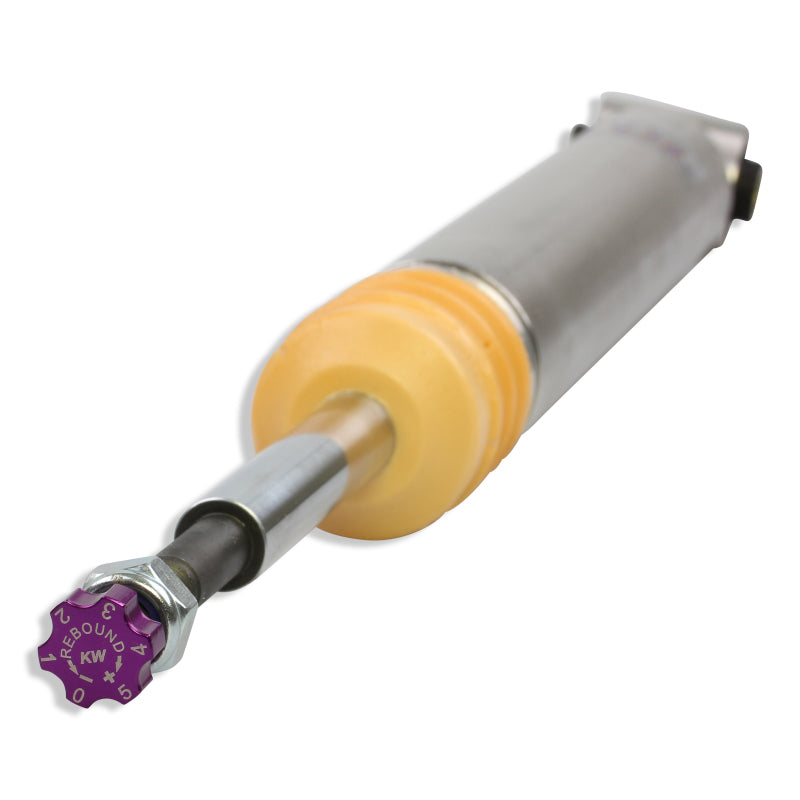 KW V2 INOX-LINE coilovers are the perfect solution for drivers who want more than just outstanding looks and adjustable ride height. In addition to stainless steel coilover struts, and corrosion-resistant components built for long term durability, KW V2 coilovers utilize TVR-A (Twin Valve Rebound - Adjustable) technology that allow Adjustment of the rebound damping characteristics with 16 clicks so you can fine tune the ride comfort or performance to your satisfaction. As with all KW coilovers our engineers develop vehicle specific damper settings that undergo comprehensive testing on the Nurburgring Nordschleife and in our KW 7-post Driving Dynamic Test Center. With a KW coilover kit the driving experience is more dynamic and direct. With the rebound adjustability you have a more direct influence on the handling or comfort of the car. With 16 precise clicks you can adjust the KW dampers (more firm or more comfortable) without affecting the compression damping fine-tuned by our engineers. The two-stage, patented TVR-A (Twin Valve Rebound - Adjustable) technology enables a small volume of oil flow through an adjustable, conically shaped, low-speed bypass during low damper speeds, while at high damper speeds, the main rebound stage valve opens allowing a larger volume of oil to flow. This provides a big improvement in terms of ride comfort without influencing the high-speed range. There are 16 precise clicks available for individual settings, so you can choose between more comfort or more body control. With KW V2 coilovers you can achieve maximum lowering within an approved lowering range that ensures a proper functioning suspension and adequate travel after your car is lowered. Even after years of use you can easily adjust the ride height thanks to the dirt resistant trapezoid thread and composite adjustment collar.